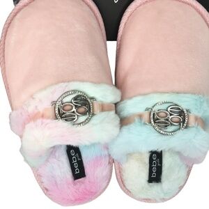 bebe Bedroom House Slippers Barbiecore Jeweled Slip On Super Soft Faux Fur NIP