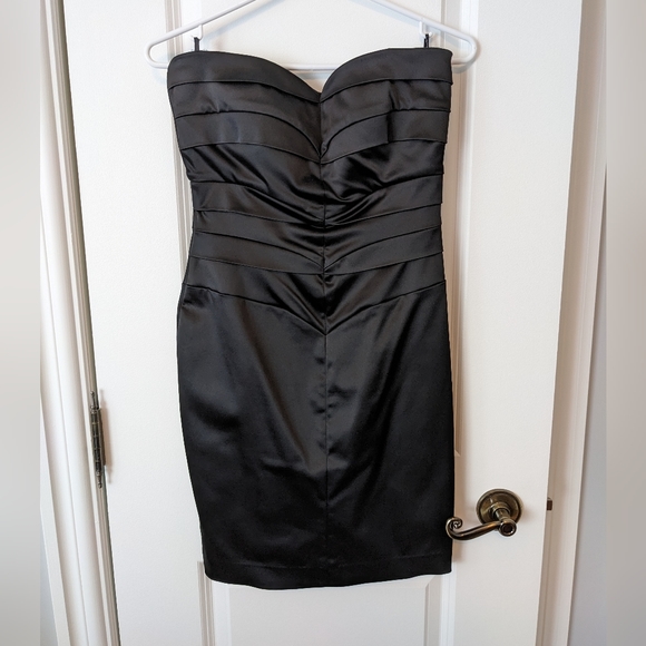 Beautiful and bodacious bodycon bustier dress from bebe. Hugs your curves without being too tight, and the material is thick and heavy so it stays put.