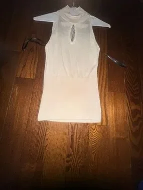 bebe Cream Sleeveless Keyhole Ribbed Tank