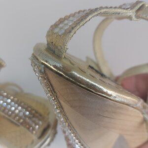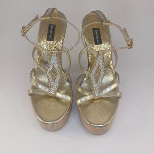 bebe Gold Strappy Rhinestone Platform Heels Size US 6