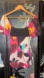 This eye-catching silk bebe blouse showcases a vibrant graphic design in pink and yellow hues. The asymmetrical style and short sleeves add a modern twist to this stylish top, making it a standout piece for any wardrobe.