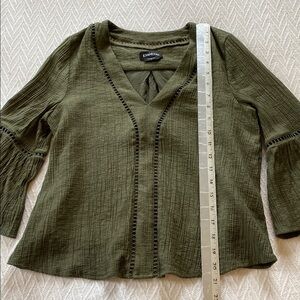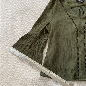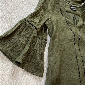 bebe Women's Boho Bell Sleeve Top Earthy Green 3/4 Length Sleeve Top Designer