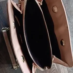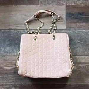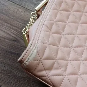 quilted peach vegan leather structured purse with gold chain detailing