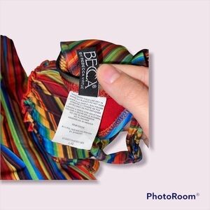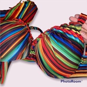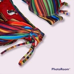 Super cute and fun Multicoloured Stripe Bikini Set From Becca, very trendy Y2K Vibes! Bottoms SZ: S, Top SZ: L