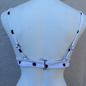 Black polka dots tag removed size large C cup removable cups also neck and back adjustable