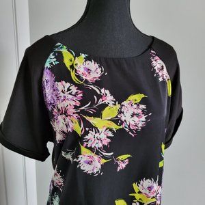 Funky black and floral block pattern midi dress - purchased in New Zealand