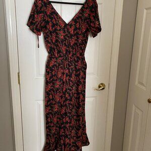 black and red floral maxi jumpsuit/romper