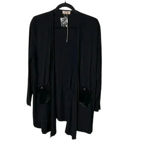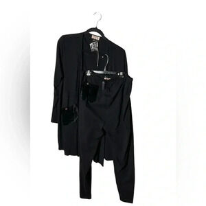 black open cardigan and pants set. Velvet patch pockets, XL.,NWT. Mina et Bina