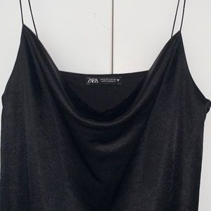 black satin slip dress