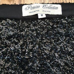 Size medium black sequin high rise shorts, zipper on the side