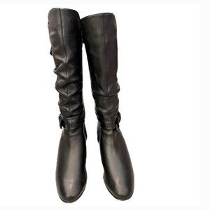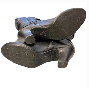 Blondo Black Leather High Heel Mid-Calf Scrunch Boots with Bow Size 6