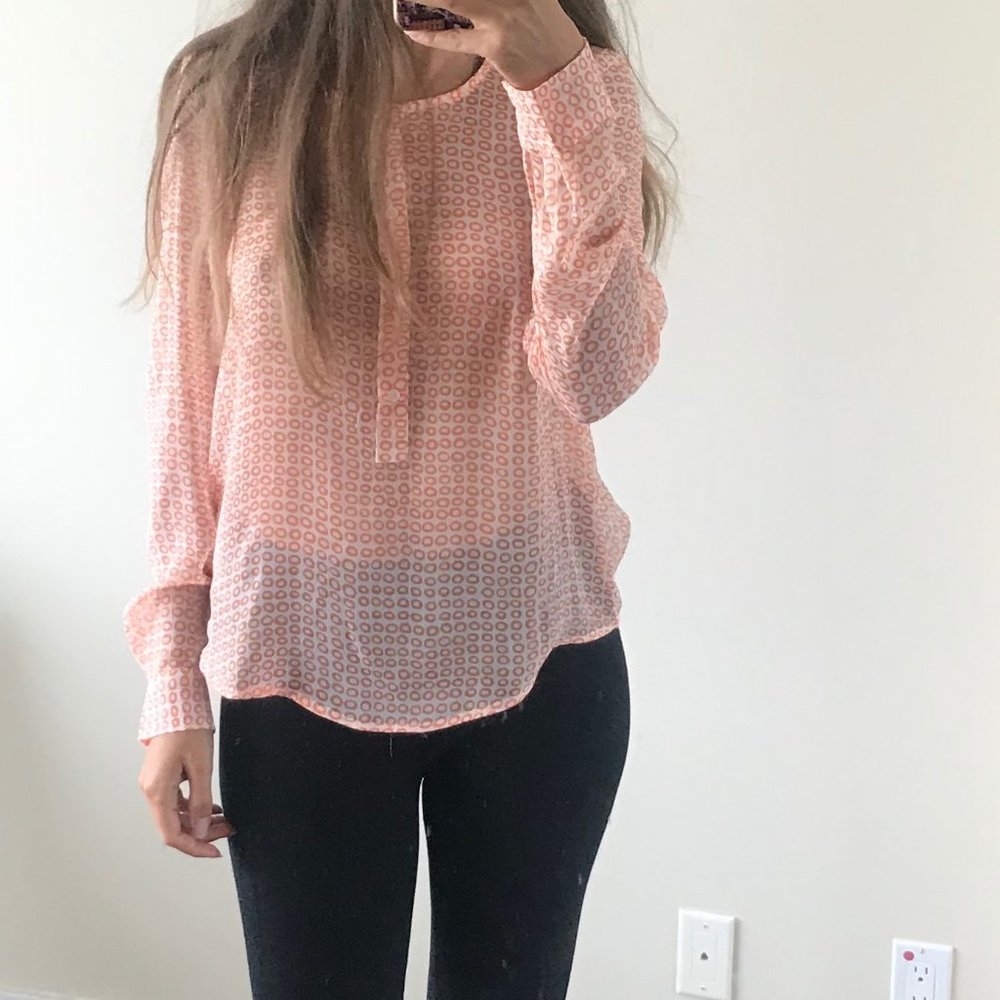 orange print sheer blouse