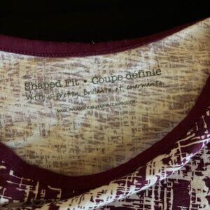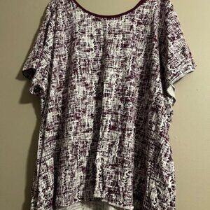 wine and white patterned blouse, short cap sleeve, 100% cotton, never worn, round neck, light weight