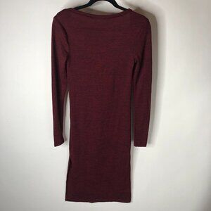 Bluenotes long sleeve crewneck midi dress in a rich heathered burgundy or deep wine color. Perfect for the Fall or Winter paired with a pair of tall boots and tights! It has a slit up one of the sides. It is a form fitting dress and super comfy as it is stretchy. In excellent used condition with no flaws. Please see photos for measurements and details. Women’s size SMALL.