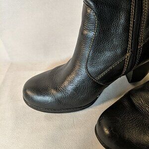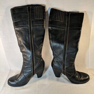 b.o.c. Black Leather Heeled Boots 3.5" Block Heel Knee High Womens 8.5 BOC Born