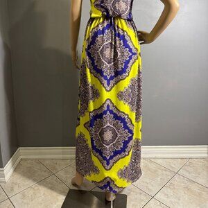 boohoo Baroque Maxi Dress 💛 yellow & royal blue racerback summer dress