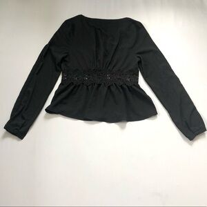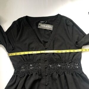 Boohoo Crochet + Ladder Trim Button Through Blouse Black Size 10