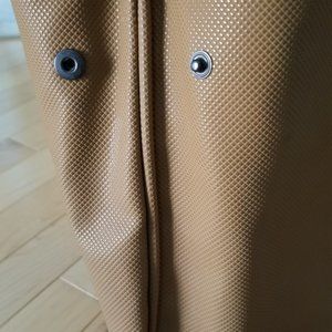 Waterproof material, slightly crack line on one of the handles, does not affect the usage.