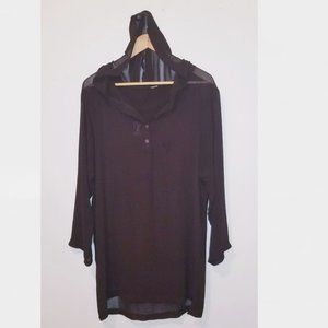 brown sheer mesh coverup with hoodie