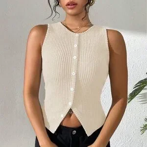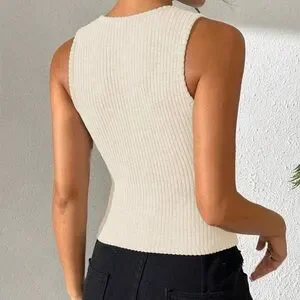 Fitted Ribbed Racerback Tank Top With Side Slit - apricot 95% polyester 5% elastane