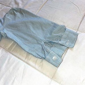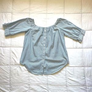 button up Puff Sleeve Square Neckline Ruched Bust Top | Colour: Blue/White