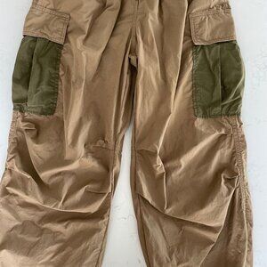 by Anthropologie Casual Hi Rise Barrel Style Cotton Cargo Pants Tan + Green