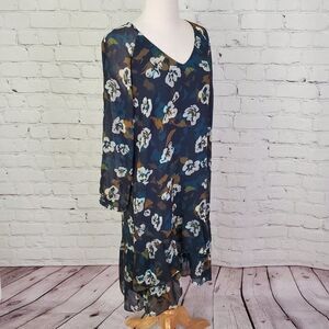 CaBI Blue Tiered Chiffon Floral Print Dress