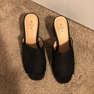 mini heel open toe dress shoes in black. never worn