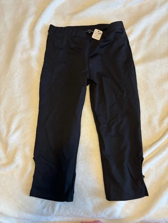 Comfortable cropped leggings for everyday wear. Stretchy fabric allows easy movement. Elastic waistband for a snug fit. Simple black design pairs with many tops.
