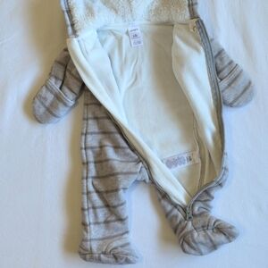 carter's gray striped fleece zipper closure bunting suit, size newborn baby boy
