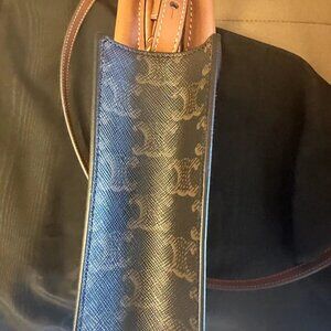 celine triomphe top handle bag mini black canvas/leather