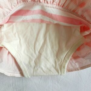 chaps pink striped jumper dress with long sleeve bodysuit diaper shirt, 2 piece matching outfit set, peter pan collar, dropped waist ruffle hem, 3 months baby girl