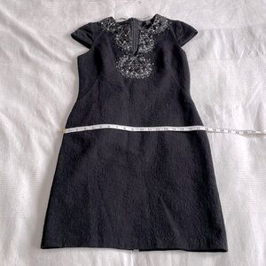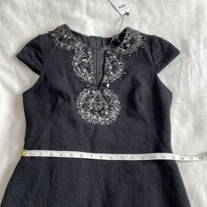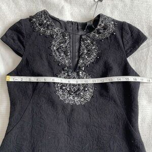 This Chetta B Sunhee Beaded Dress is new, with tags. Gorgeous beading at the neckline. Cap sleeves. Zip at the back. Cotton shell, acetate lining. Great quality! Size 4 - please see pics for approximate measurements.