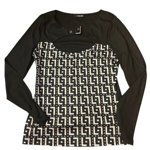 chic Black and White Geometric Women's Top