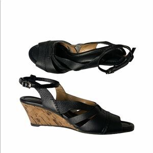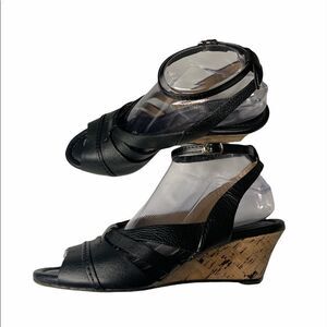 chloe Leather Ankle Strap Cork Wedge Sandals