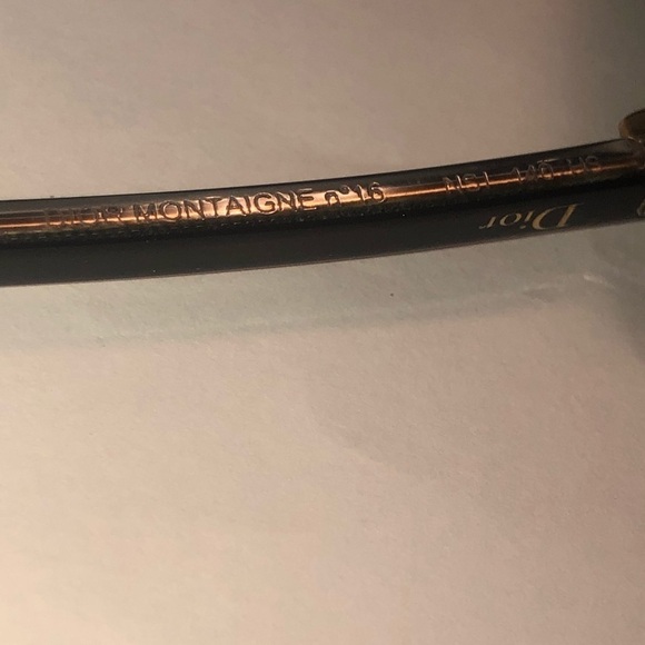 Designer Christian DIOR La Montaigne Black Frame Glasses w Gold Trim Upper Arms & Inside of Arms.