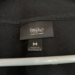 Lying flat, this piece measures approx 10.5 inches from pit to pit. However, there is some wiggle room in the stretch and since it's open in the front!