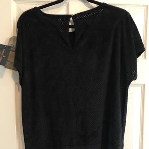 Trendy , mid /above knee dress, beautiful cut , black suede (feels like suede-polyester)