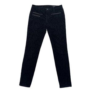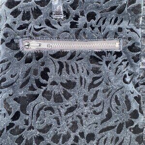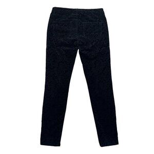 Designed with attention to detail, these pants feature a stylish zip button fly and functional zippered pockets—two large working ones for your essentials and a decorative smaller zipper on the right. The velvet texture with a subtle black damask print adds a touch of elegance, while the classic back pockets and belt loops allow for versatile styling options. Dress them up with a statement belt and heels for a night out or pair them with a chic blouse for a polished office look.