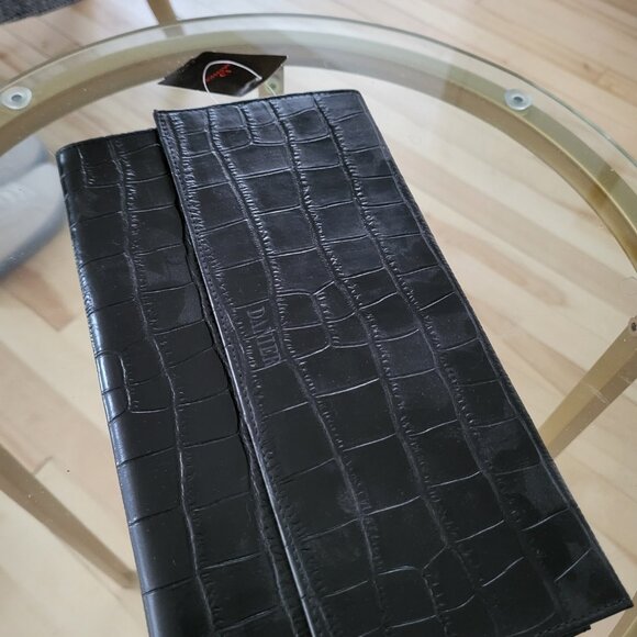 Croco evening clutch from DANIER. Black. Never worn. flap pouch. Magnetic clasp. 3 interior compartments. Dimensions: 6'' x 10'' x 1''