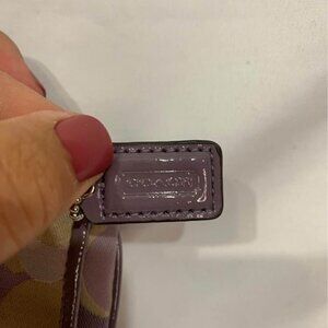 coach wristlet. Brand new! Tan/purple. Card organizer built in.