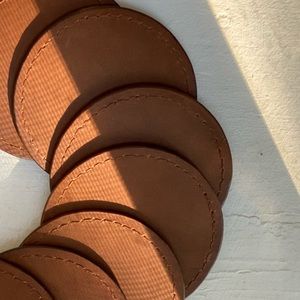 Brown leather smooth texture. Set includes 4 pieces of coasters. Handmade by CMNLK.