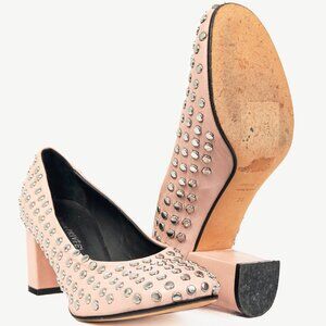 collection PRIVEE Pink Studded Leather Block-Heel Pumps