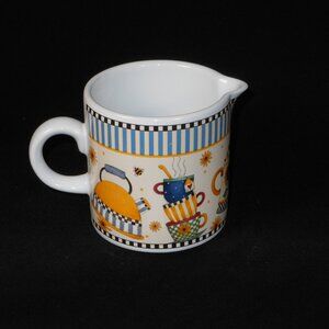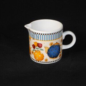 colorful sugar bowl & creamer set. Sakura TEAPOTS 1998 Debbie MUMM stoneware