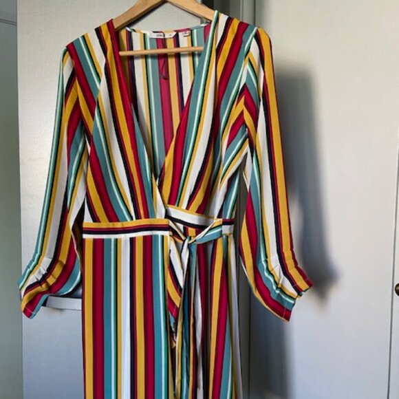 Light wrap dress with colourful vertical stripes. Almost brand new. It was only worn for two hours