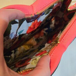 heart shaped bag from indigo in coral pink with floral interior. excellent condition used twice.