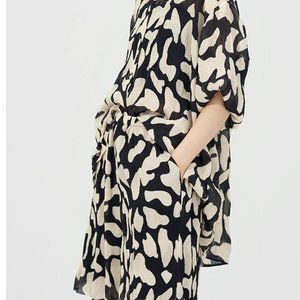 cow pattern thin section simple commuter pleated sunscreen shirt shorts suit women