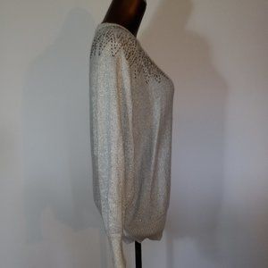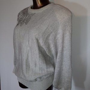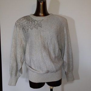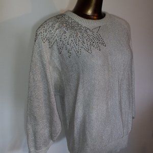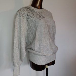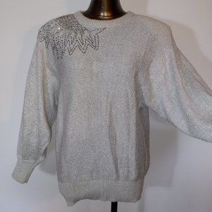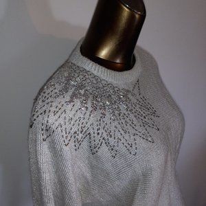 crew-neck silver metalic thread acrylic sweater sequin and beaded vintage 1980s