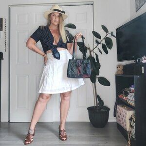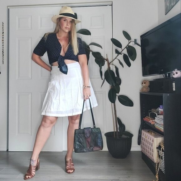 crisp WHITE 100% COTTON TEXTURED DOTTED SKIRT