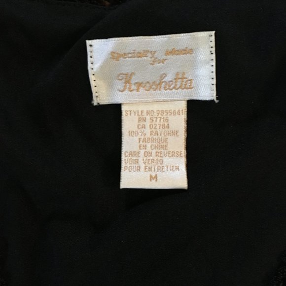 it says medium size on the tag, but it fits a little small. I've never worn it, only tried it on. It would look best if your arms are on the thinner side. It has a build in camisole. Hand wash, lay flat to dry, 100% rayon.